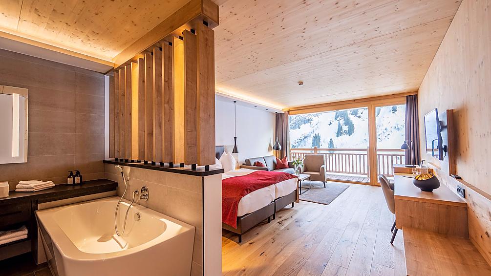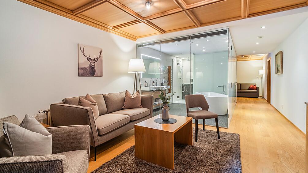 Die Alpensuite überzeugt mit viel Platz und einer gemütlichen Sitzecke zum Wohlfühlen. Dank der…