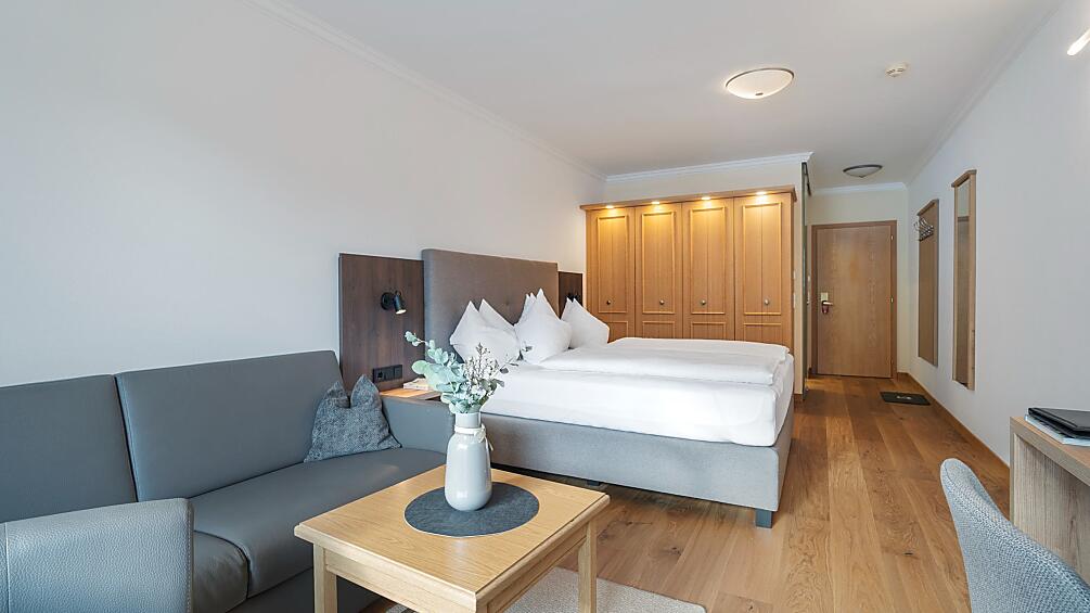 Die Doppelzimmer Sonnenhang bieten viel Platz zum Abschalten und Auftanken. Die großzügige Sitzecke…