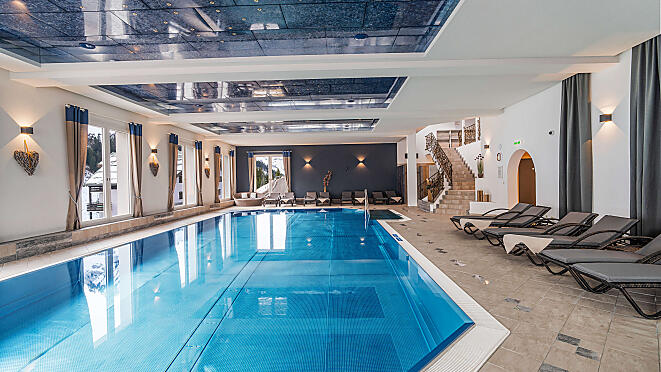 The connection with nature becomes even greater in the infinity outdoor pool, where you can let your gaze wander over the wonderful mountain world and forget everything around you. In winter comfortably warm and in summer a wonderful refreshment, the pool offers a breathtaking view over the surrounding mountains and meadows. Additional relaxation is offered by the pleasant bubble loungers. An indoor entry promises a warm feeling from start to finish and a sun deck invites you to linger at the pool's edge.